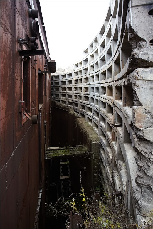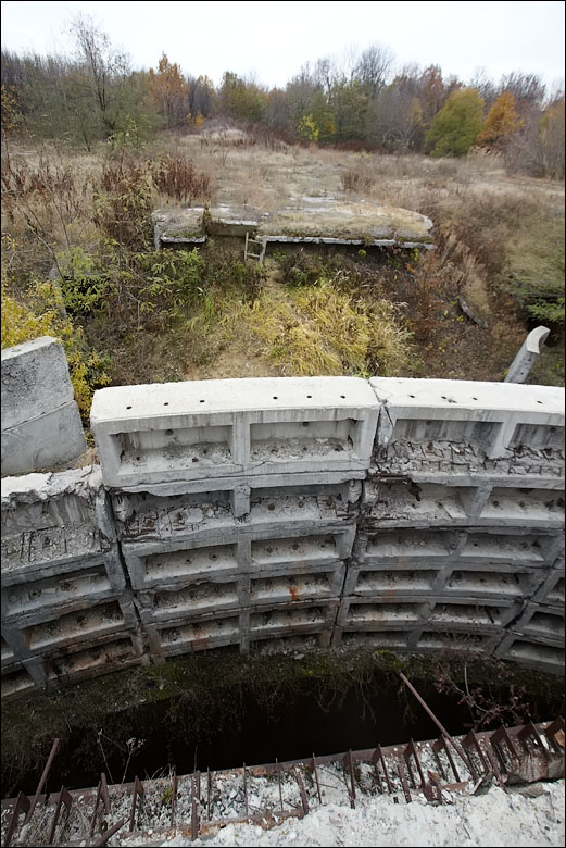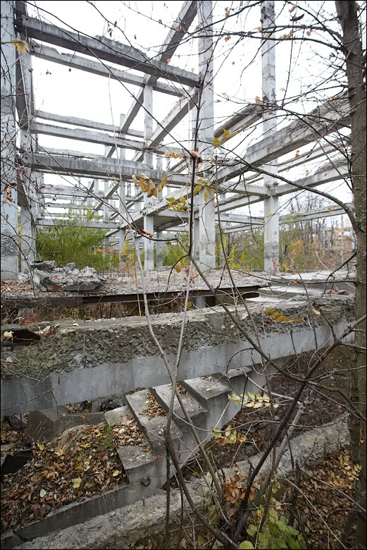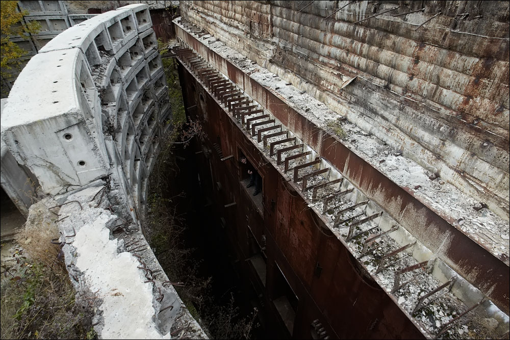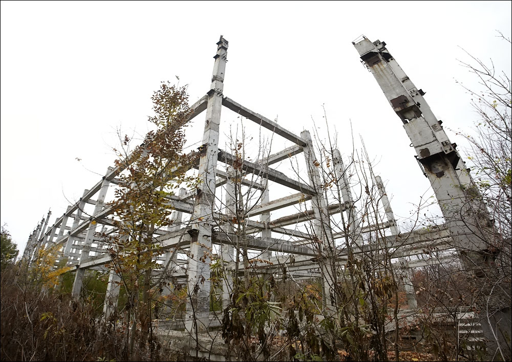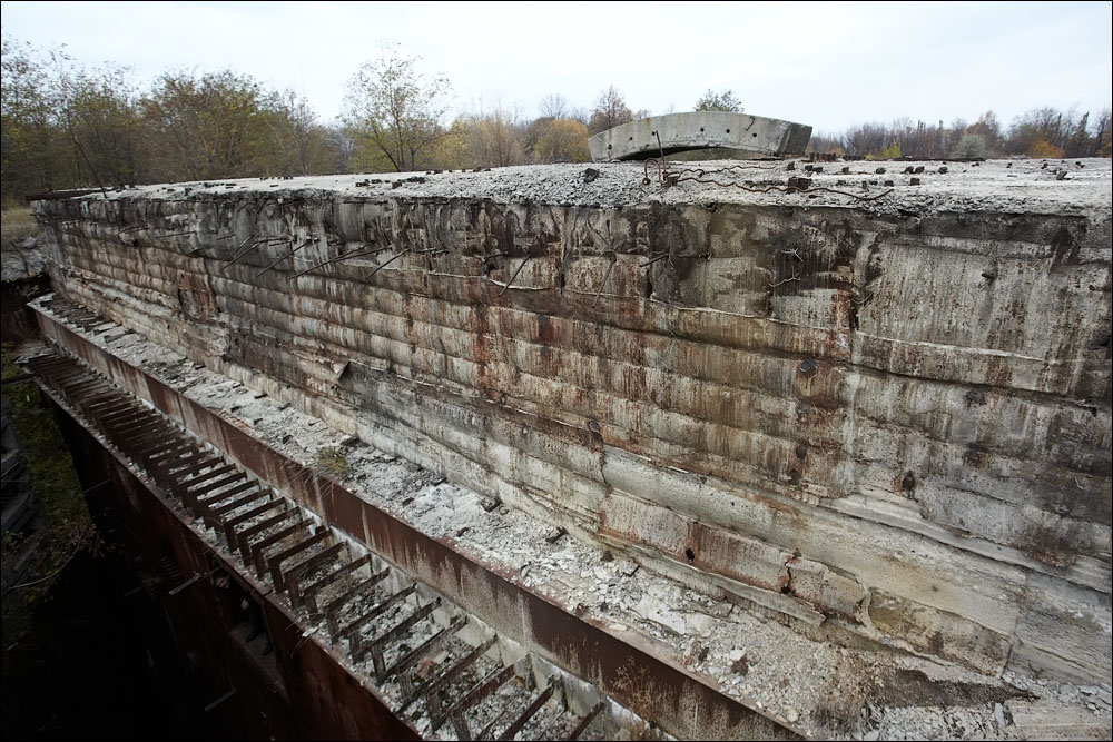 Строили с многократным запасом, толщины металла и бетона не жалели, поэтому хоть всё и разрушено, но ничего не прогнило.