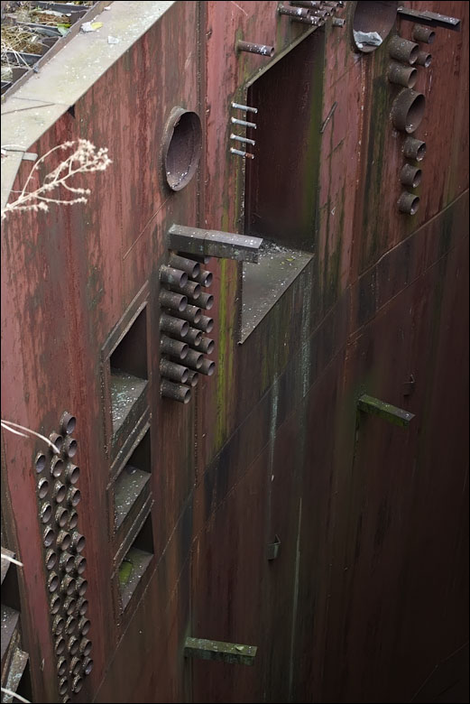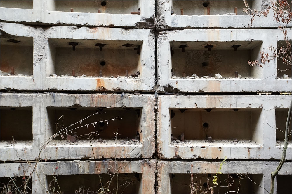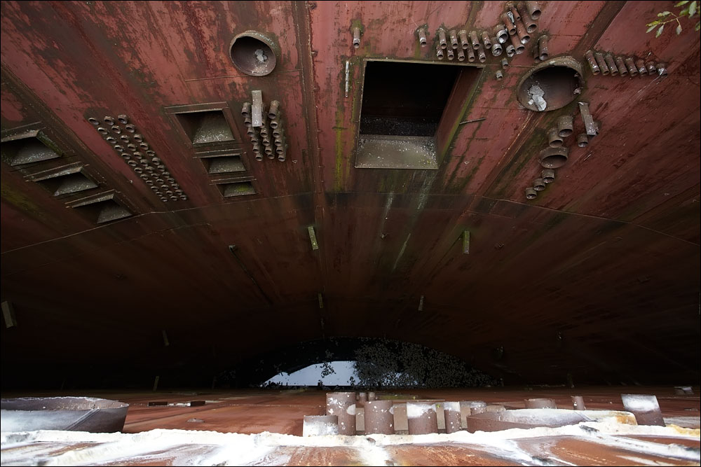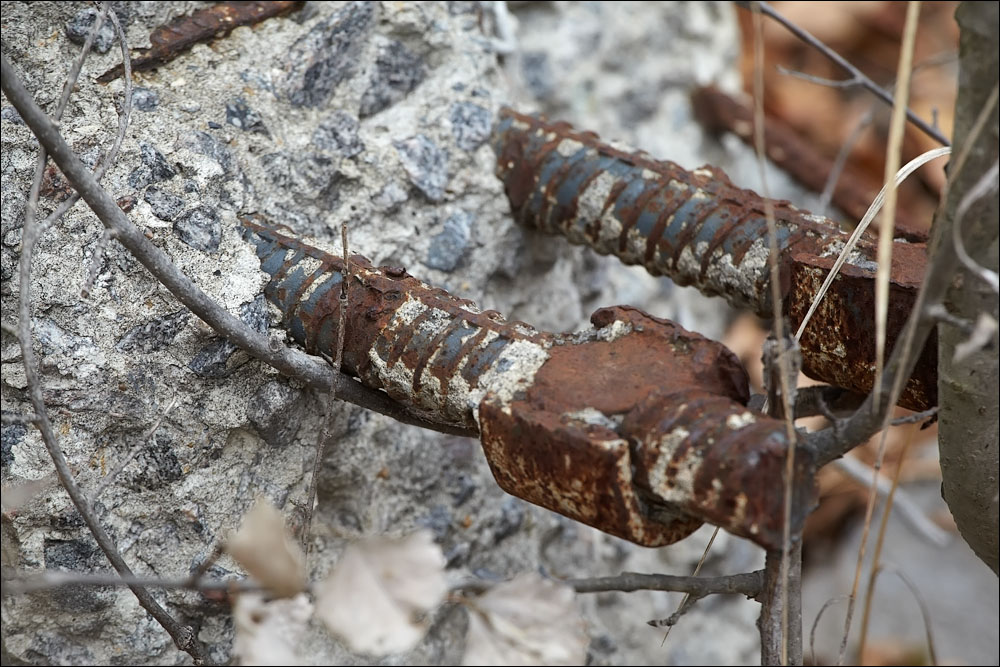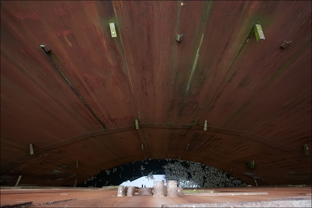 Строили с многократным запасом, толщины металла и бетона не жалели, поэтому хоть всё и разрушено, но ничего не прогнило.