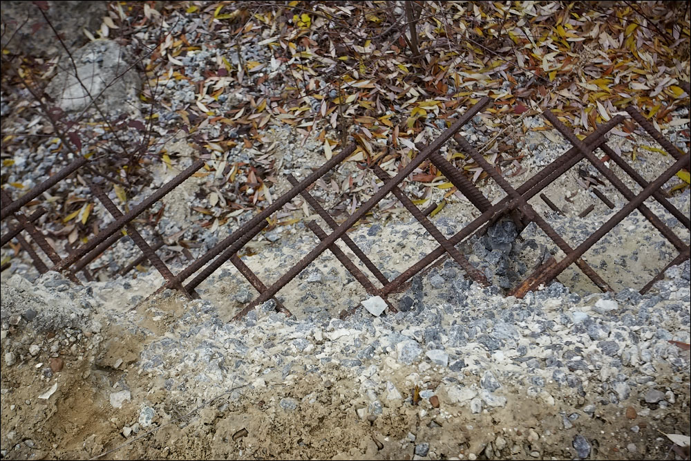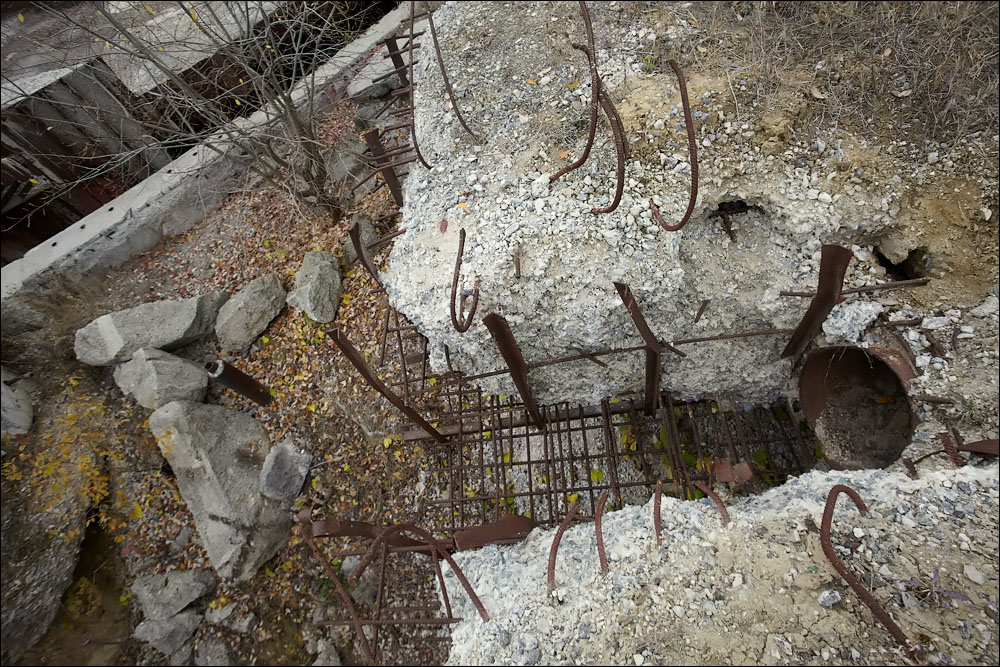 Следует соблюдать осторожность, повсюду торчит арматура.