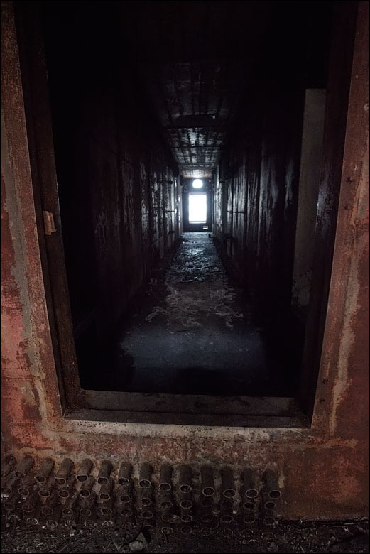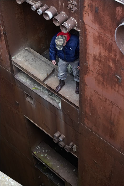 Смотреть в эту щель страшно, а когда подумаешь о том, что ниже уровня воды находится ещё восемь этажей — становится не по себе.