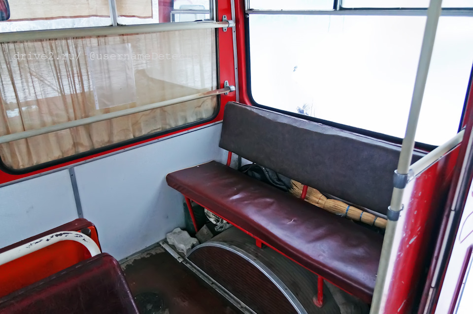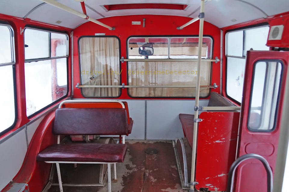 На задней площадке, которая у этой версии идёт вровень с полом остального салона, тоже должны стоять сиденья — но здесь их нет