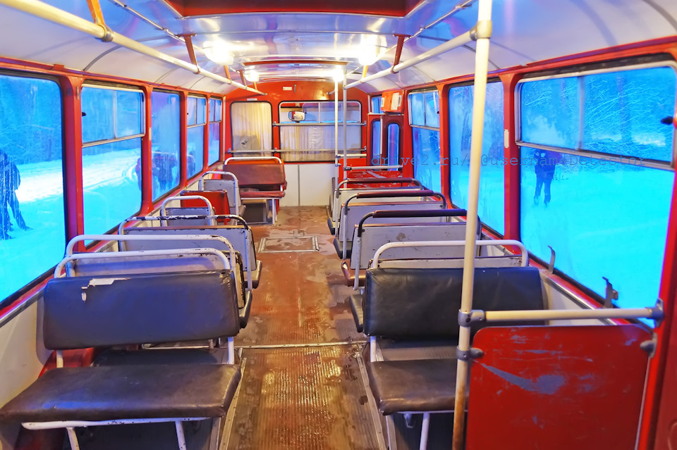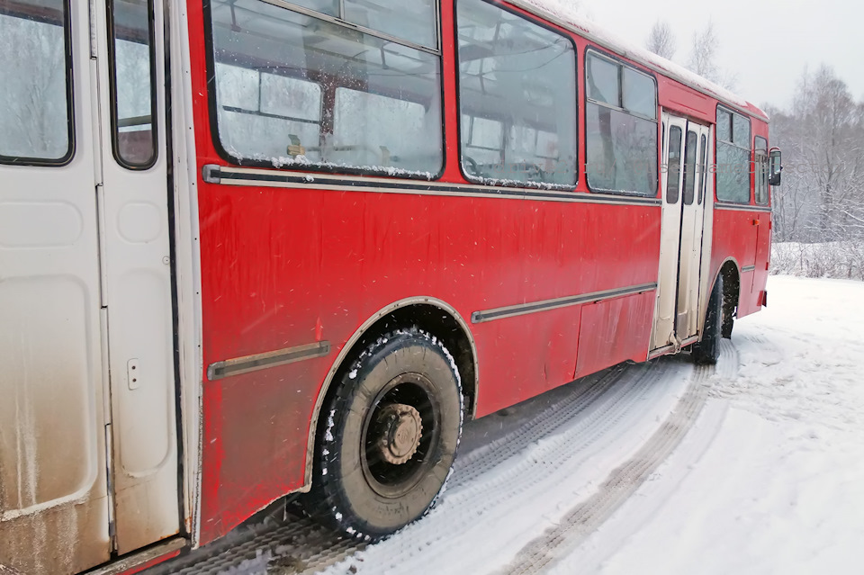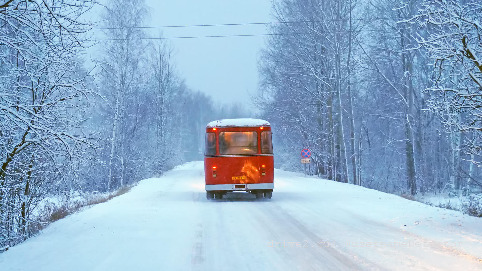 При этом бóльшая часть маршрута пролегает по знатно разбитой дороге с жалкими намёками на асфальт. Здесь типовой для русской провинции ПАЗик вытряс бы из пассажира последние кости, но ЛиАЗу с его пневморессорной подвеской кочки нипочём. При этом пейзажи вокруг — замечательные: среди зимнего леса и безмолвных, заснеженных полей, ярко-красный старый ЛиАЗ выглядит по-настоящему празднично, будто грузовик из новогодней рекламы Соса-Колы!