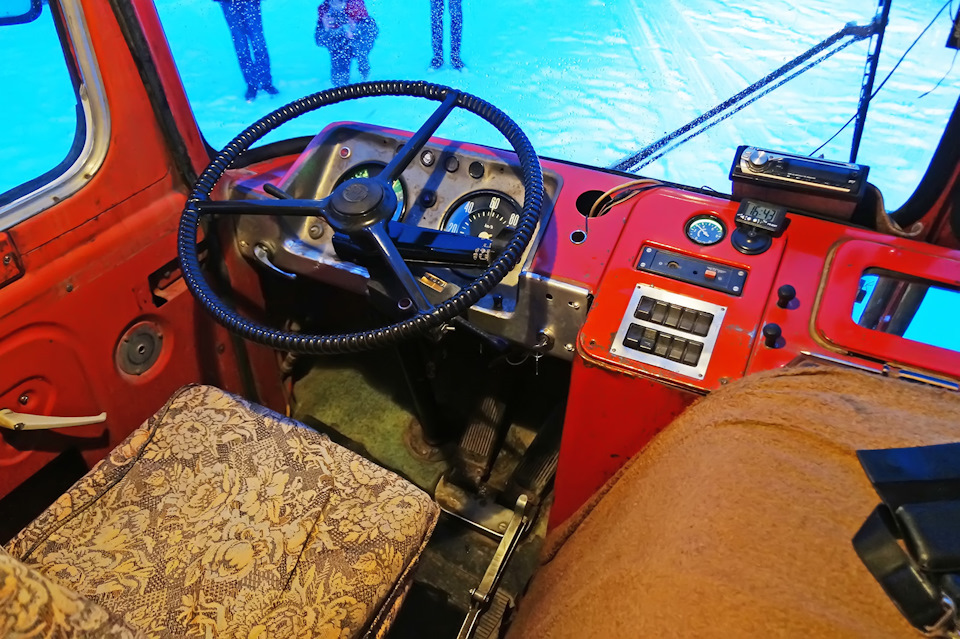 За смену ЛиАЗ поглощает 60 литров 92-го, и работает едва ли "в ноль" — машину выпускают из гаража скорее чтобы не нарушать сообщение посёлка со станцией, пока стоит сломанным основной автобус. Естественно, "луноход" работает на бензине — никакого ГБО, потому что здесь машину будет попросту негде заправлять. На месте и оригинальная автоматическая коробка передач — та самая львовская ГМП, делающая автобус прожорливым и неторопливым. Пробег ЛиАЗа на сегодня составляет примерно 450 тысяч километров: для автобуса с заявленным сроком службы до 700 тысяч это — жалкие крохи.