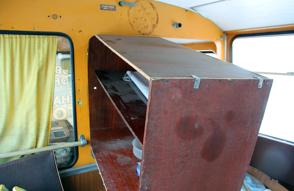 Пункт первый по наведению порядка требовал вынуть "шкаф" (хреновина похожая на комод вообще-то) хотя бы для того, чтобы можно было попасть к двигателю через капот который расположен у рабочего места водителя. Сие процесс усложнялся минимумом инструмента (две отвертки, плоскогубцы) и тем что предстояло вынуть сие сооружение из "дупла" в одиночку.