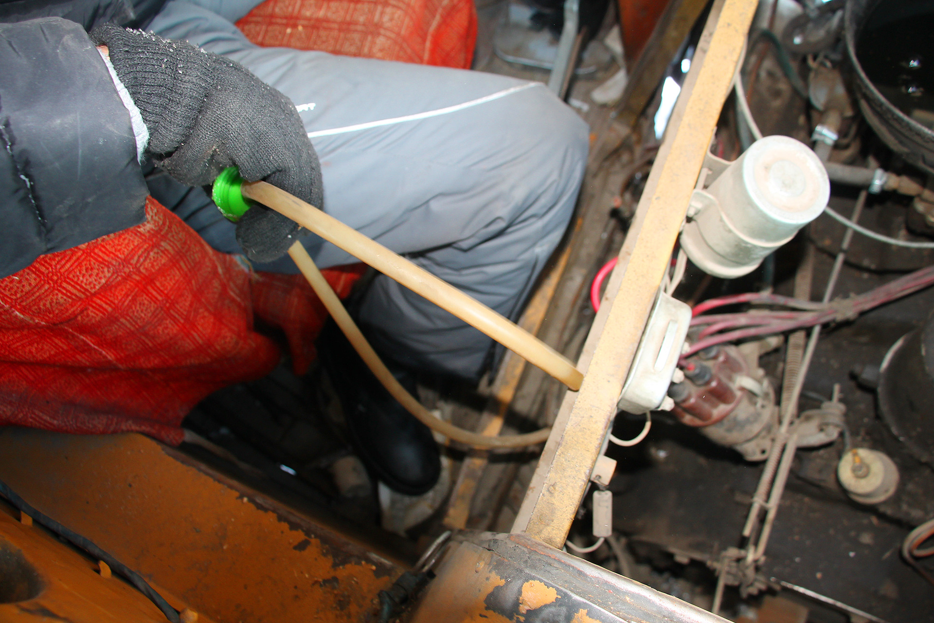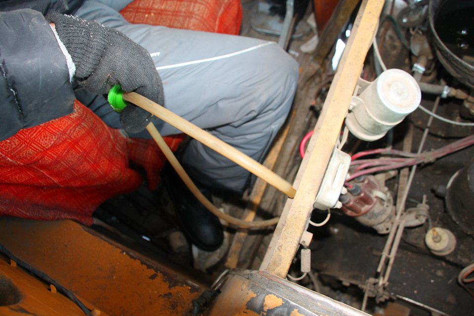 Про питание хочется сказать отдельно. В связке у меня было только два ключа — от кабины и зажигания. Но особо добрые люди (либо это было сделано по заводу) поставили замочек "аля шкафчик в супермаркете" на лючок бензобака. Открыть его не представлялось возможным, поэтому до меня "реставраторы" сделали классическую систему — от канистры которая стояла в кабине. С учетом передвижения автобуса, её за глаза хватало.